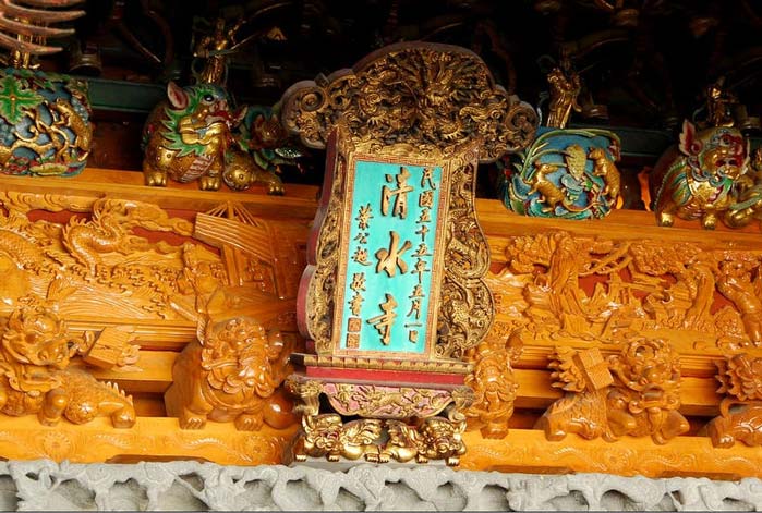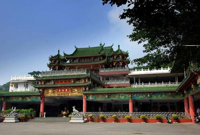 清水岩寺的建立 清水岩的南麓有一座观音堂,称之为“清水岩寺”,创建于清康熙5年6月15日(1666),原始因有地方农夫,在耕作日入而息之际,路经岩下,发现山边一把火焰,光芒数尺,照明四周,及近视之,不见一物,如此数次,其疑不已。于是特在光天化日之下,拨冗循径往探,结果非他物体,惟有岩边树上悬挂小红香灰囊一只,两面写明释迦牟尼佛及观音菩萨两座大慈大悲佛号,当时其情传遍邻里,感召地方居士,结庵供奉。后来经地方居士张简立先生 信佛心坚,有所感应,则在道光十四年,发起将草庵改建为庄严寺宇,期间时有修楫,到民国16年(1927)翻盖,而后数十年,缺乏营缮,致使庙壁剥落,宇项坍塌。至民国53年8月15日(1964)兴工全面改置,管理人有刘然、刘万生、刘必准、刘见章、刘树柏、许登仕等,并历聘主持张简赐、谢赞、叶昌玄、张简片等,以资管理寺产及伺季典与诵经礼佛之责。