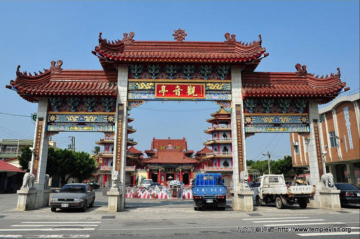 路竹一甲观音亭,位于路竹一甲部落。初建于清康熙22年(1683),据传是郑成功的随军由南海普陀山祈求香火护身出航,抵台后于一甲择地结茅焚香供奉,至今已经有三百余年。几经整修、重建,今之庙体于民国71年(1982)落成,是庙宇钟鼓楼中少见的双塔形式建筑,颇具特色。庙宇占地约一公顷,庙前广场设有一圆形龙虎莲花池,池中雕塑龙、虎等吉祥物。高耸的钟鼓楼双塔可供游客远眺,庙后设置有公园、凉亭,供香客休憩。