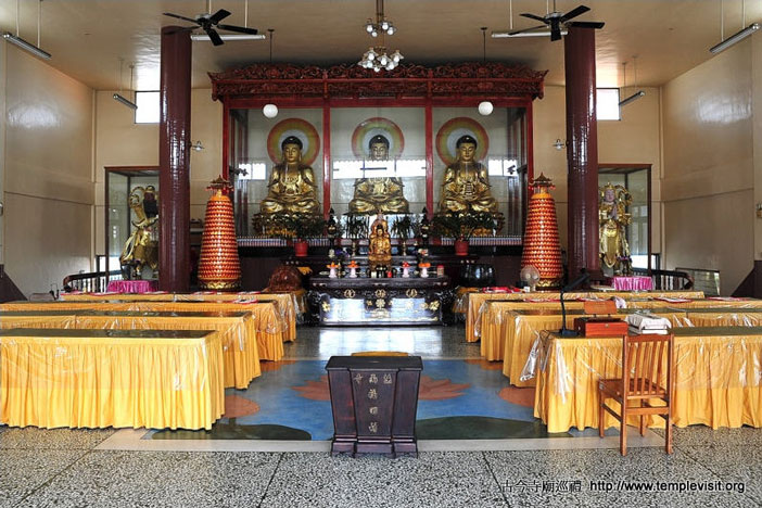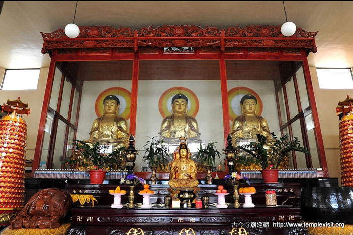 法雨寺的前身想必就是弦德堂,当年划地建堂的界线,如今在各方公路开辟后,亦是难以辨认了。法雨寺起初的规模不大,仅有平房式的大殿及左右寮房,如今除新建大殿外,复又于旧殿上方加筑一殿,规模与气势不可同日而语。新大殿一楼是“法雨讲堂”,二楼供奉三宝佛,十分清净庄严。
