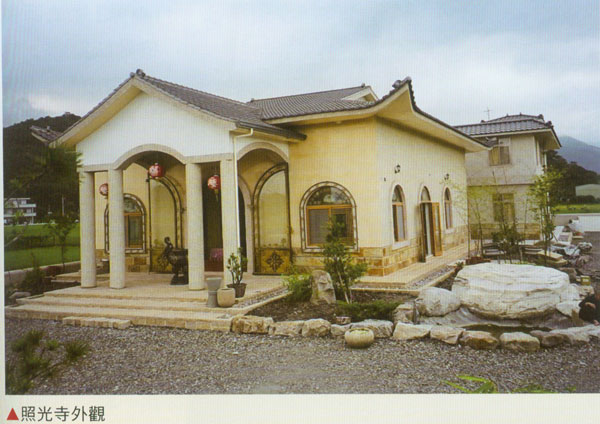 照光寺之兴建系出自林春曦先生之构思,采中国传统式建筑样式,保留著古代建筑风味之特色,并采用米黄色做为主要基调,占地2,612平方公尺,大殿主供三宝佛。