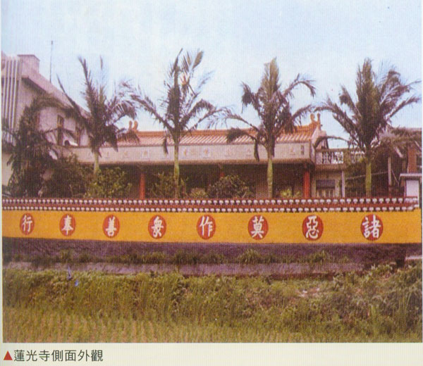 莲光寺位於宜兰县头城镇,旧称静养堂,初为在家信众共修场所;由宜兰县第1届县长卢赞祥之祖母陈定修居士捐献地基,由马高玄等居士出资建筑,民国27年落成。