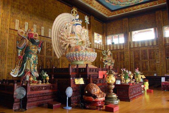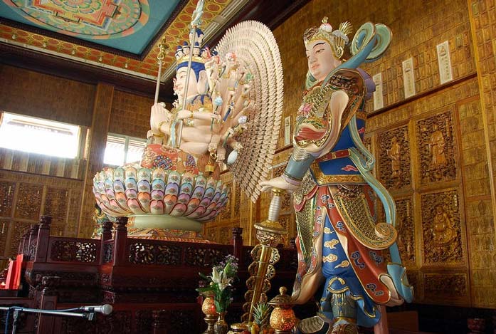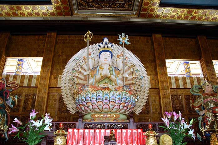 民国八十九年国历十二月十二日,大悲殿预定地举行动土典礼,当日由地清师父恭请竹巴噶举教派确衮仁波切莅场筑坛修法,祝祷道场兴建顺利圆满。翌年三月鸠工兴建,前后历时六年,至民国九十五年竣工。大悲殿堂,美轮美奂、庄严艺雕、巧夺天工,约八丈高的大悲殿,供奉法相庄严的千手千眼观世音菩萨,须弥座以红木精雕成坛城状,庄严壮观。左右有韦驮伽蓝二菩萨镇守护法。殿内墙壁全为木雕万佛像及大悲咒八十四出相图、八十八佛名号,地板则创首举采用竹片板铺合。殿外墙壁是精铜雕铸的观世音菩萨三十二相图及阿弥陀佛说法图,周边以汉白玉石腹围219件从尼泊尔订做的转经轮,纯手工打造,每转一圈即代表持咒一次,经轮常动,如法轮常转,普薰法界,利益有情。环列大殿四周的显密彩绘大柱,散发高贵气息,耸立艳阳下,熠熠发光,如佛说法放光,遍传十方。
