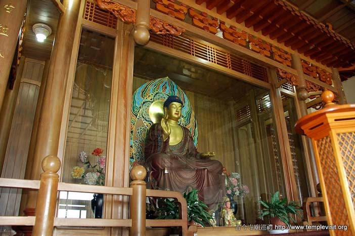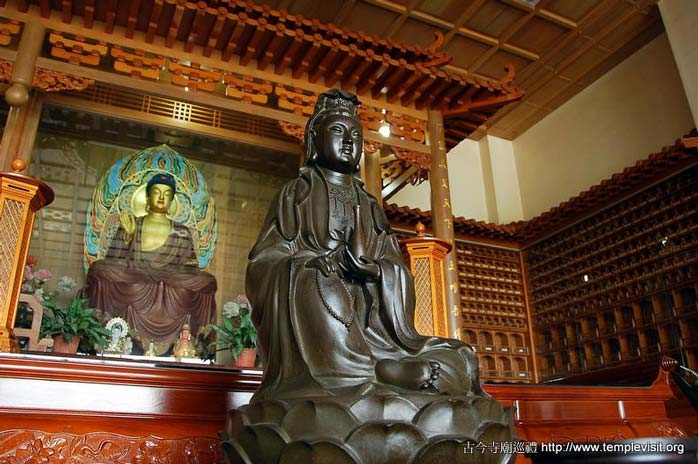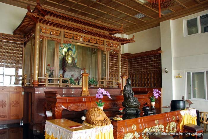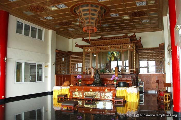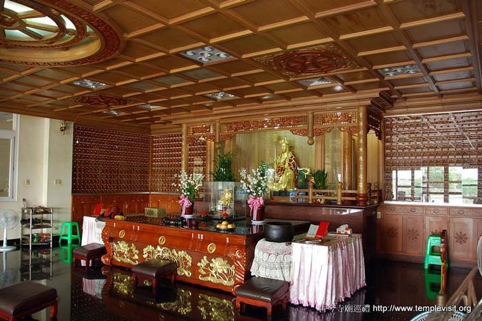 为独栋黄瓦红墙4层楼建筑,供奉地藏王菩萨。