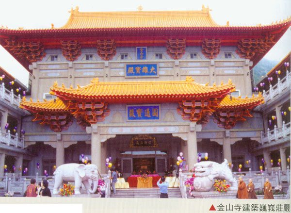 民国90年5月,金山寺全面拆除重建,此为创寺以来第4次扩建,历经整整5年方告竣工。95年5月8日举行重建落成典礼。[寺庙建筑]