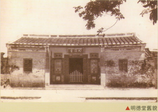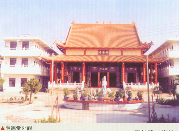 明德堂为斋教龙华派,光绪年间(日据时代)由台南德化堂(建于清道光十七年西元一八三七年)分香而来,以下即是明德堂之沿革: