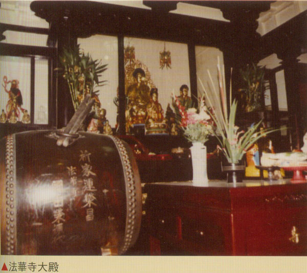 法华寺原名“日莲宗法华寺”,座落於西宁南路,地处繁华的西门町中宁静的一角:为日据时代(西元1918年)由日本侩侣佐野是秀募集经费兴建。曾是台籍、日籍众佛教徒们虔诚共修,努力宣扬佛教教义的清净寺院,其热心捐款奉献的信徒,不乏本省籍万华地区人士。