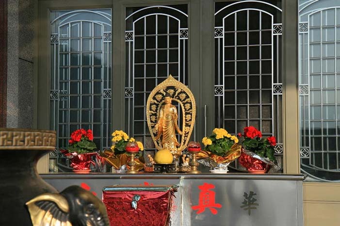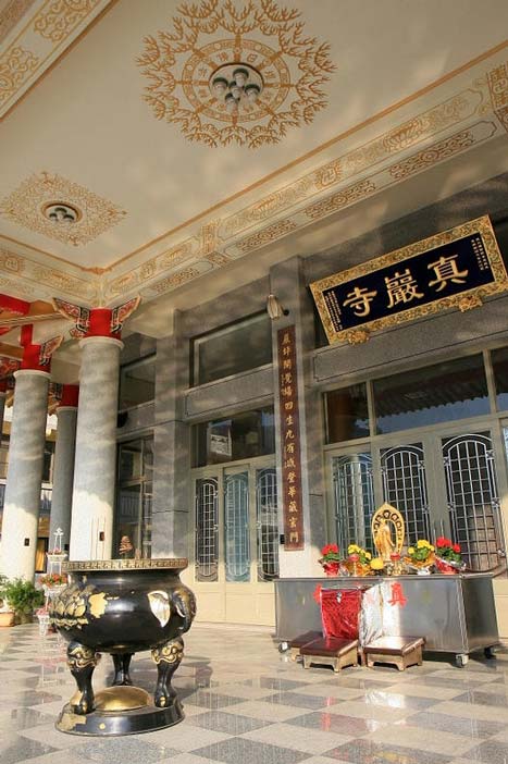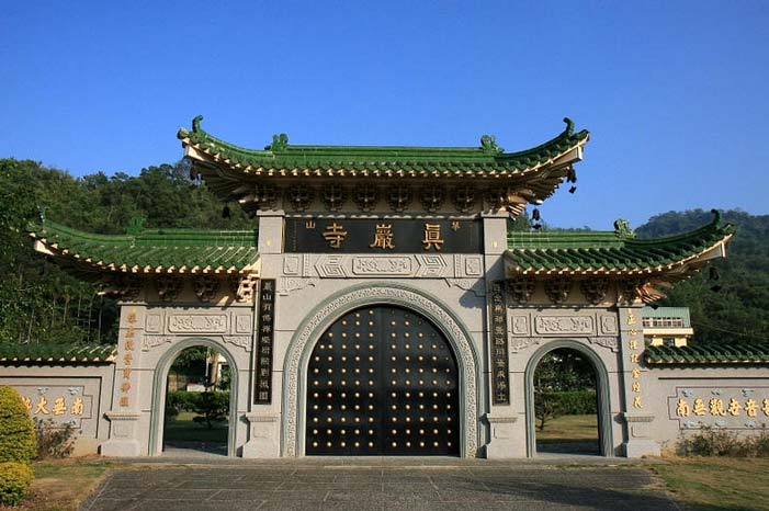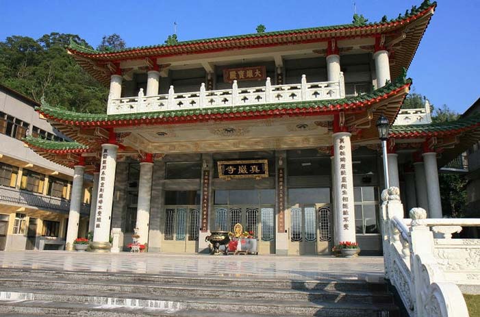 真岩寺属台湾佛寺四大法脉中的法云寺系统,座落的所在地自名为“华山”,前邻溪流,背倚青山,全寺腹地广大宛如置身在一座大公园内。真岩寺的格局中规中矩,中央为大雄宝殿,供奉本师释迦牟尼佛、观音菩萨等,大殿的左边为极乐院,右边为功德堂,全为绿瓦白墙,十分醒目。