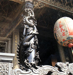 祖师庙历史悠久,在前殿中门前,有一对粗壮的龙柱;而两侧的山墙,有十八世纪末、十九世纪初的砖凋图桉,是庙中现存最古老的艺术品。此外,在梁架、石壁、龙柱上,也都刻有清朝的帝王年代,都是浑厚朴拙的作品,所以祖师庙曾被称为表现清代中期最具特色和艺术水准的台湾庙宇。
