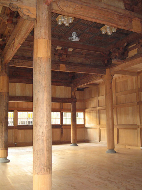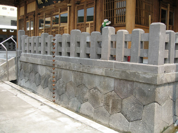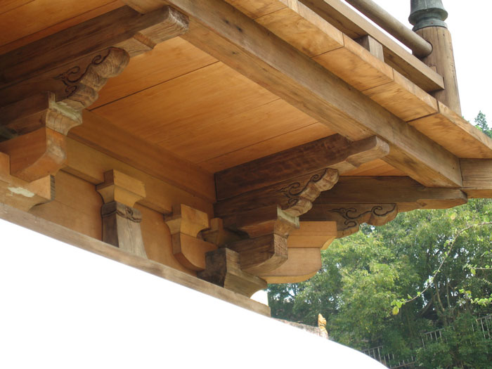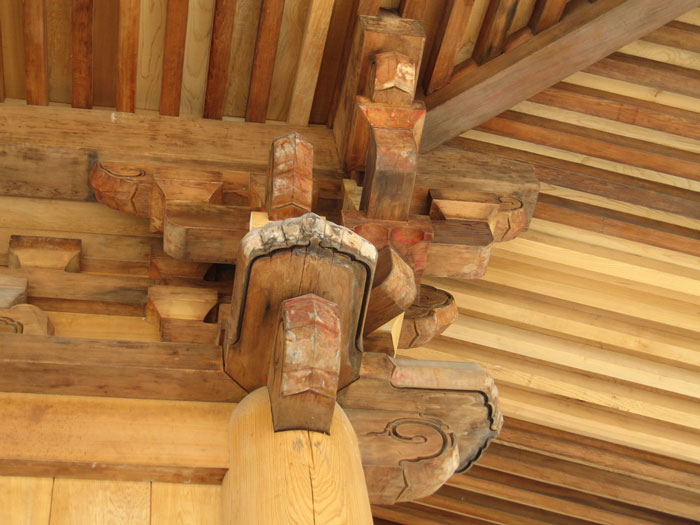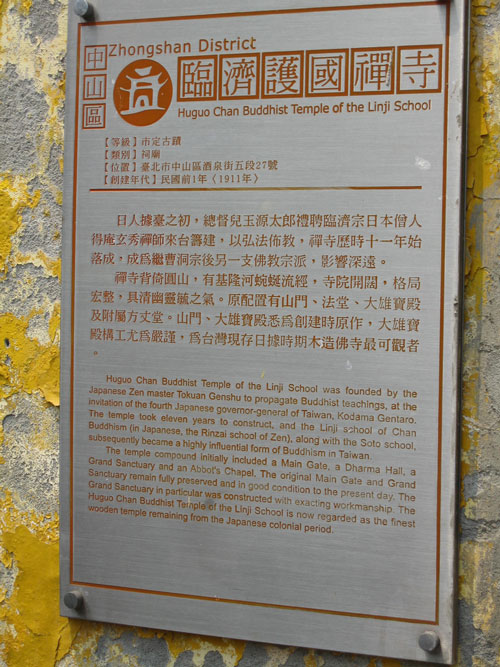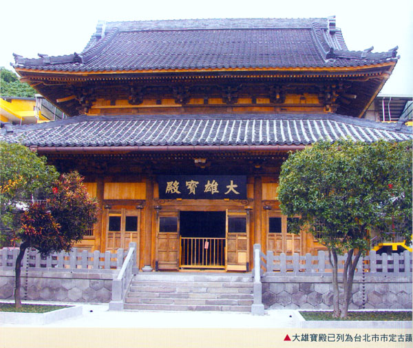 临济护国禅寺建筑为仿宋式禅寺建筑,也是现存全台最大、保存最久远的日据时期木构建筑,然因年久失修,禅寺木;材因雨及白蚁侵蚀,逢雨季便漏水,为了修护古寺,董事长净心法师曾多次赴日本京都参观三处古寺修复工程,日本京都妙心寺也多次派员前来指导,修护工程自民国94年土月动工,采全建筑解体重修方式,耗时3年多,经费除台北市文化局补助工,085万元及技术指导外,亦获得日本相关单位的资助,其余均靠董事会自行筹措,加之农林木材林董事长捐赠所有桧木,杨正郎居士采购与监工,为保持原貌,寺方也特别远巨日本名古屋订制仿作黑瓦片,并四处搜集桧木进行整修,至於梁柱上原为红色的油漆,也由匠师以药水清掉,还原为原木色,97年8月,修复工程正式完工,百年古刹以本来面目呈现於世人面前。[弘法、文教]