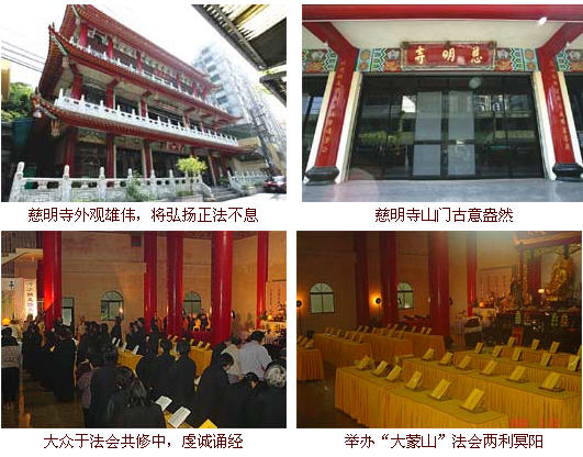 民国九十三年,黄居士在体悟中台禅寺导师 上惟下觉大和尚所教示的禅宗心法后,深觉唯有弘扬佛法,确立正知正见,使众生明因识果,方能真正离苦得乐。遂恭请 大和尚派任法师,驻锡弘法,大阐宗风,使慈明寺在三宝慈光的普照下,转大法轮,击大法鼓。