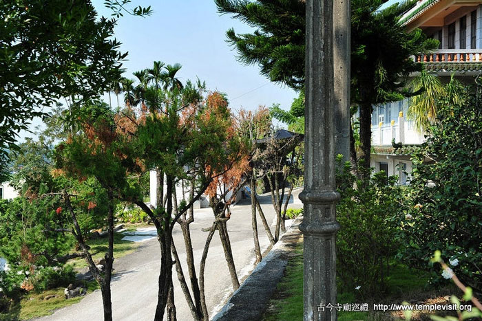 顺着左侧小径可抵“正眼图书馆”(参玄学舍),续前行可至“华藏宝塔”,塔前有小池塘,莲叶飘香,旁有凉亭一座,可眺望竹崎小镇。