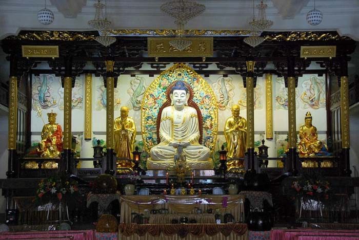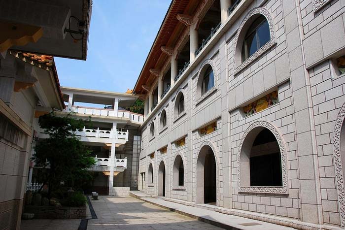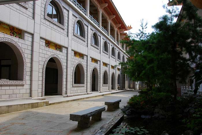 寺院依山傍水,环境清幽,寺院创建原型为四合院式,前殿奉祀弥勒菩萨,两面侧配祀四大天王;后殿为正殿,供奉释迦牟尼佛。东厢为库寮、齐堂,西厢为客堂、禅堂等。