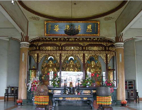 嘉义天龙寺于民国六十年前后所新建之大雄宝殿,左右分别为普贤阁、文殊楼。
