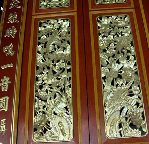 殿门凋有华丽繁複的花鸟等古图