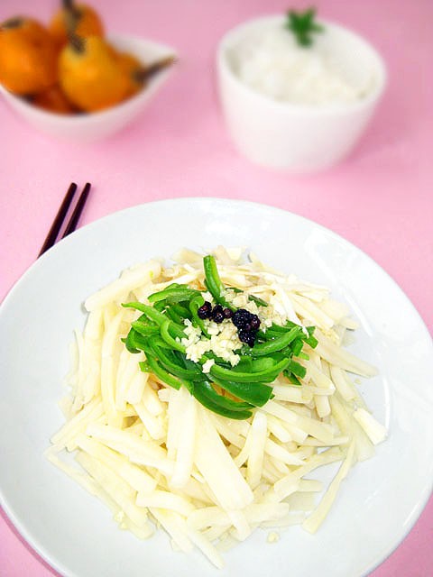 材料:茭白......1根半、青椒......1根(配色用,不是必备品)、花椒......7颗、麻油......3大匙、、盐......适量、糖......适量、素蚝油......适量