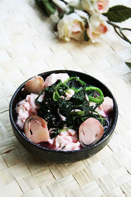 1、苋菜洗净,沸水中放一点点盐,放入苋菜焯一下捞出沥干水分