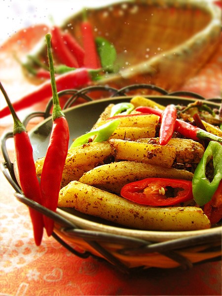 【原材料】土豆1个约280克、姜1小块、干红椒10个、小红椒5个、花椒5克。