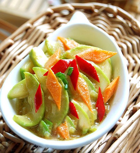 a:西葫芦、胡萝卜、红辣椒、姜。