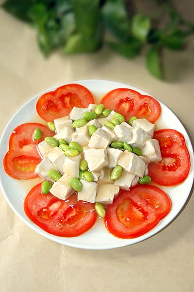 原料:豆腐、番茄、豆米、素蚝油、盐、糖、生粉、蘑菇精。