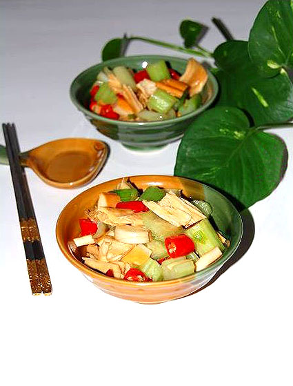 原料:西芹、腐竹、花生、毛豆、杭椒