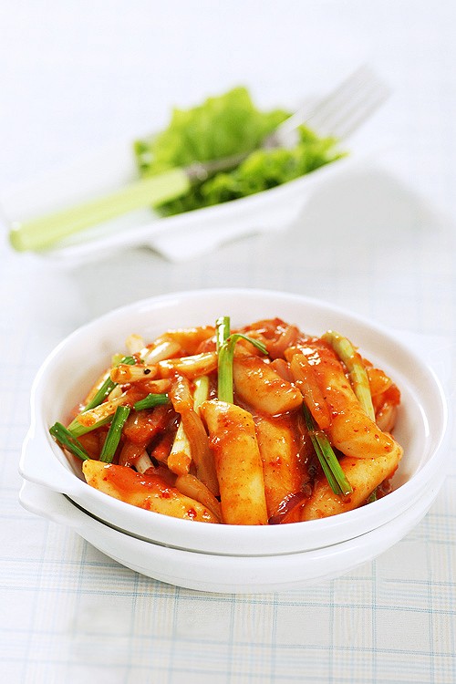 材料:手指年糕150g,韩式辣白菜100g,腌辣白菜的汁50g。油2汤匙。