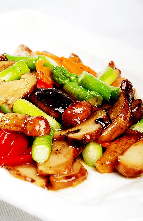 食材:松茸仔、芦笋、红椒、胡萝卜