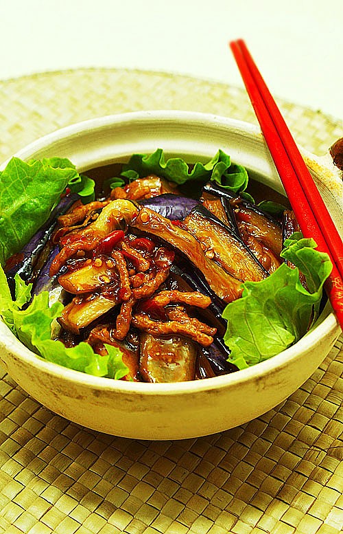 原料:茄子、素肉丝、姜丝、四川豆瓣辣酱