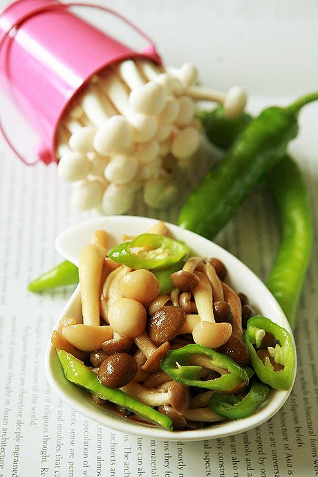材料:白玉菇,蟹味菇,尖椒,美极鲜味汁