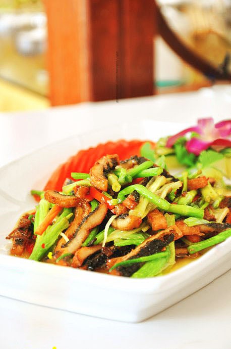 主料;水芹 素鳗鱼 红椒丝 姜丝