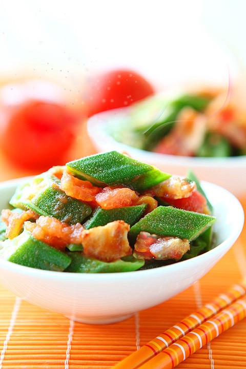 2:烧开半锅水,加入少许食用油,倒入秋葵煮2-3分钟去除涩味。
