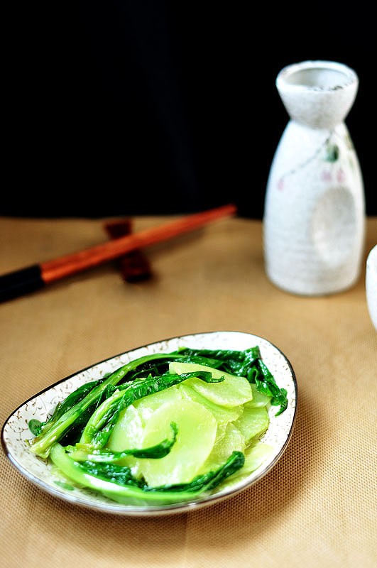 2、莴苣切成薄片后放少许精盐腌渍10分钟,去水分后的莴苣片更脆嫩。