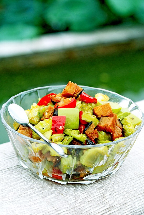 (3) 红椒也切成小方块待用。