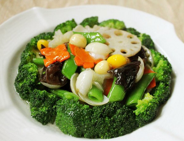 主料:西兰花、百合、莲子、银杏、银耳、黑木耳、莲藕、甜蜜豆、胡萝卜