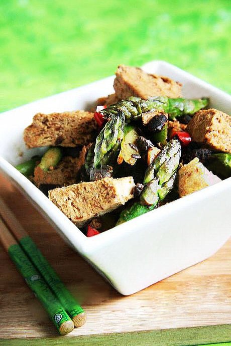 材料:芦笋,冻豆腐,豆豉,小红辣椒