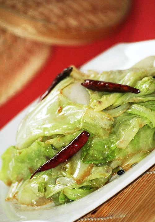 材料:圓白菜半顆、干辣椒6條、花椒1小撮