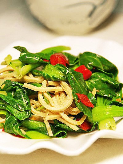 小油菜炒豆腐丝