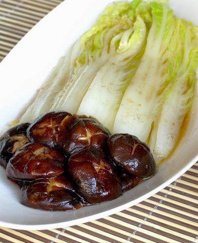材料:鲜香菇、娃娃菜、盐、素蚝油、白糖、水淀粉、香油。