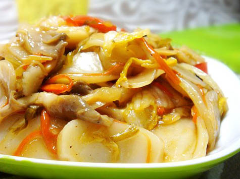 原料:年糕、大白菜、平菇、胡萝卜、雪菜(雪里红)、辣酱