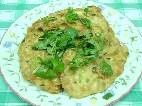 6、结成一块后在周围加油煎至表面略微焦黄时翻另一面煎即可