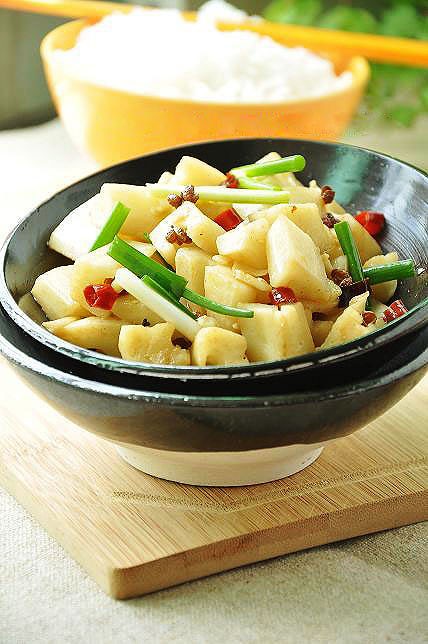 【原料】莲藕、干辣椒、花椒、葱、醋、美极鲜味汁、盐