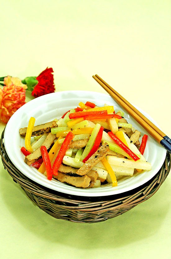 甜椒山药炒素排