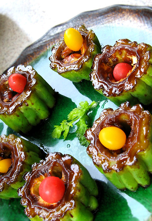 2、热锅热油煸香放入苦瓜,中火2分钟后翻一下~