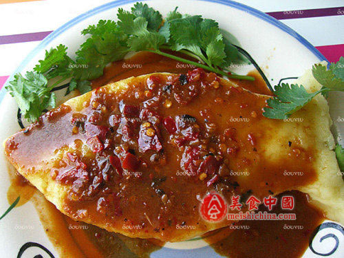 3、另取一锅,加一点底油,烧热后,加一茶匙半的郫县豆瓣,酱油、醋、白糖,做成鱼香味的浇汁;
