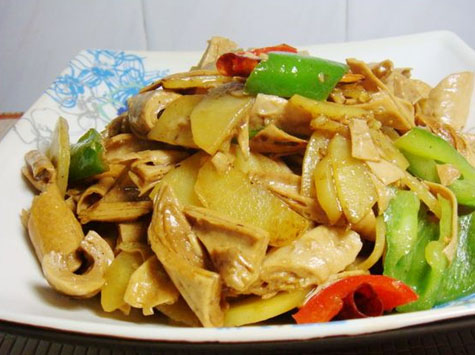 原料:豆筋(如图)、土豆、青红尖椒、姜