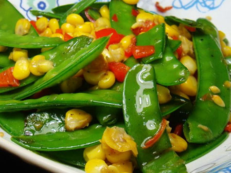 制做方法:起锅热油,爆香姜丝,放入荷兰豆翻炒几下后,再倒入熟玉米粒和红尖椒粒爆炒,加盐、蘑菇精调味即可。注意:1、荷兰豆不可以炒太久,颜色变绿后即可出锅。2、翻炒荷兰豆时最好淋点水,这样不易炒焦。