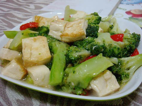 原料:西兰花、豆腐(用盐水豆腐,不用嫩豆腐)