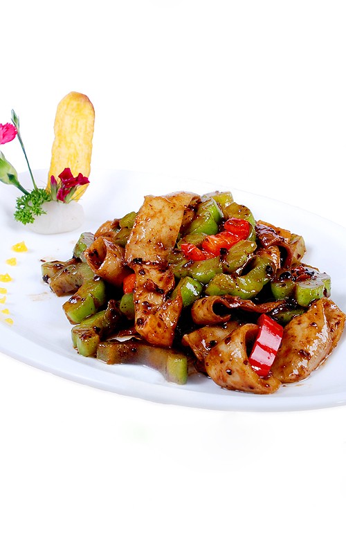 蘑菇精调味拌匀,勾一点点薄芡,出锅装盘即可。