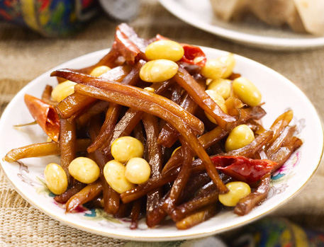 原料:水疙瘩1个 干黄豆100克 干辣椒15根