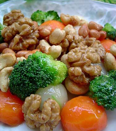 4、最后洒上炒香的果仁即可上菜。