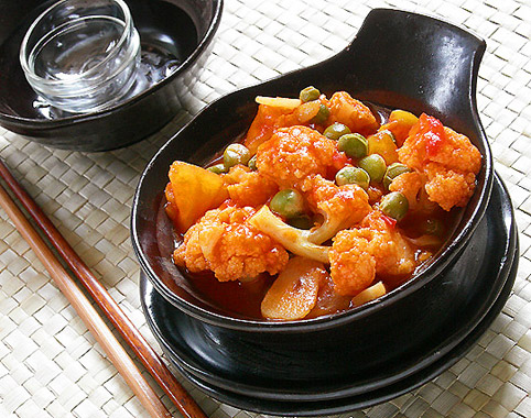 1、原料:菜花一朵、西红柿1个、青豆一把、番茄沙司70克(大约,看着放就行)、水淀粉适量。